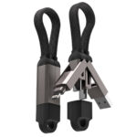 Cable multiconector de 22 cm fabricado en aleación de zinc, nailon y elastómero termoplástico, diseñado para ofrecer durabilidad y resistencia. Incorpora 4 conexiones: USB A y USB C como entrada, y USB C y Lightning como salida, permitiendo una alta compatibilidad entre dispositivos.