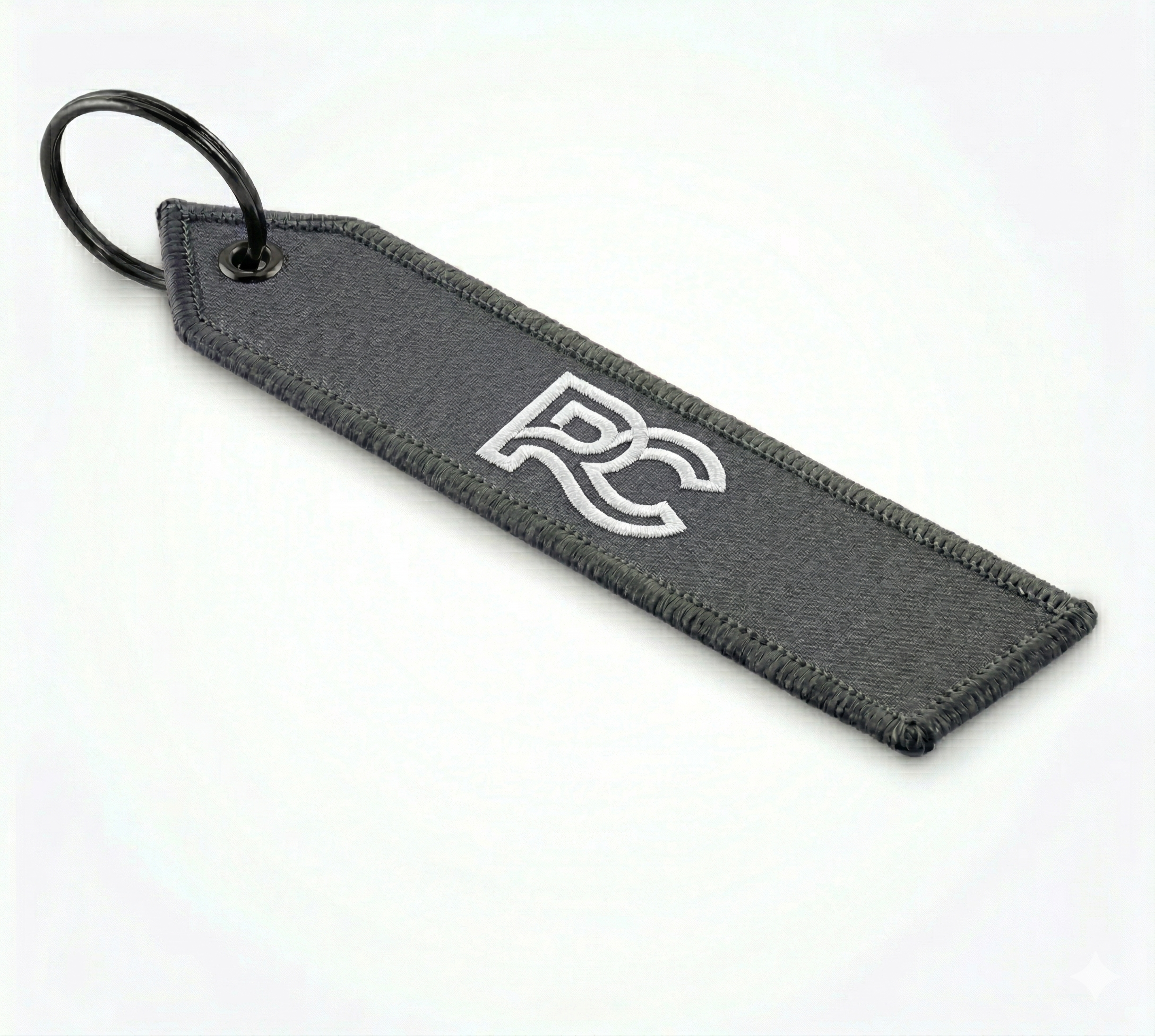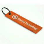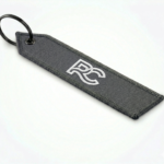 Llavero con un logo bordado a dos colores a ambos lados, el llavero cuenta con unas dimensiones de 160 x 35 mm.