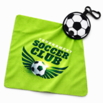 Paño de 190 GSM, con un logo a un color mediante impresión monocromática, cuenta con un tamaño de 18 x 18 cm abierto, y está compuesto por microfibra, por otro lado el estuche del paño se puede hacer con distintos diseños siempre y cuando sea redondo.